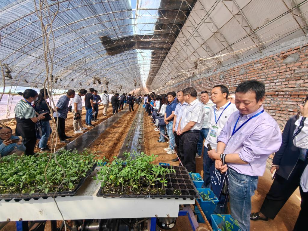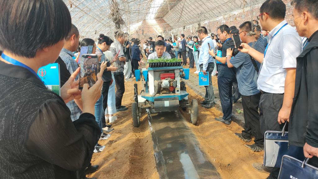现场观摩会上,与会人员在北票市台吉镇现代农业产业园观摩了40余套农机具进行土地平整、土地旋耕、起垄覆膜、秧苗移栽、有机肥和化肥撒施等环节的机械化作业,参观了植保、灌溉、环境调控等生产管理和采收运输辅助设备演示展示,日光温室越夏茬番茄东西垄宜机化生产展示。重点围绕设施蔬菜全程轻简化与机械化生产、设施建造园区化、设施结构宜机化、生产作业机械化、设施装备自动化、生产管理轻简化、栽培方式绿色化和生产服务社会化等进行交流研讨。